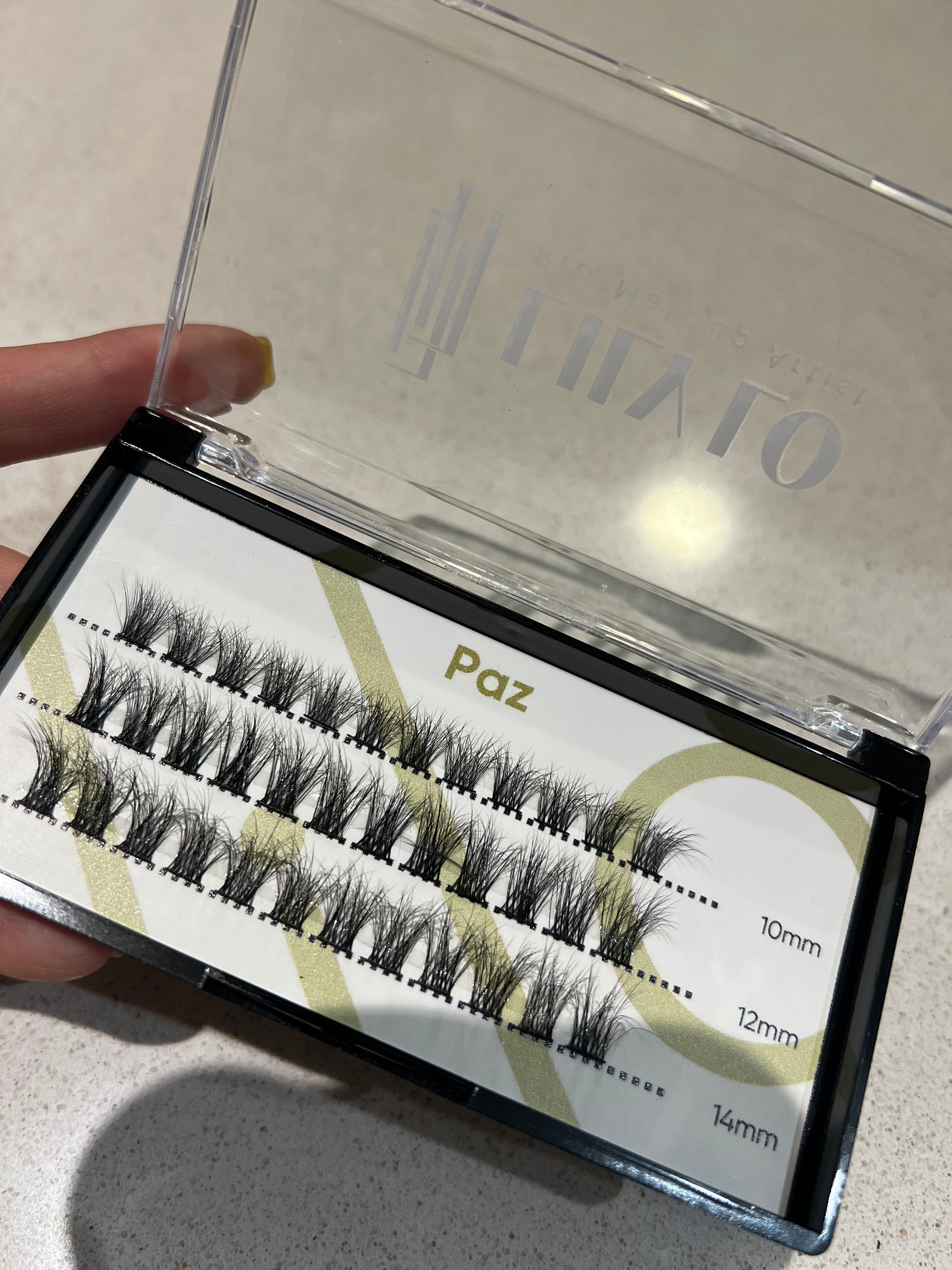 Incluyen 36 unidades individuales de pestañas en total, con 3 tamaños de largo, 12 uni de 10mm, 12 uni de 12mm y 12 uni de 14mm.